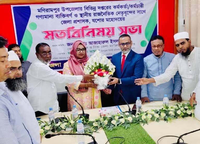 কর্মজীবনে যশোরে আসাটাও আমি মনে করি একটা হিযরত। এখানে এসেছি ১ বছর পার করেছি,আল্লাহ চাইলে ৫ বছরও থাকতে পারি,আবার আগামিকাল আমি না থাকতেও পারি। কেউ কোথাও চিরস্থায়ী নই!তাই নিজের চারিত্রিক গুনাবলী দিয়ে সৎ পথে থেকে ভালো কাজের মাধ্যমে মানুষকে সেবা দিতে হবে। একজন অসহায়কেও তার প্রাপ্য বুঝে দিতে হবে। বর্তমানে আমরা একটি চ্যালেঞ্জিং সময় পার করছি। সব প্রতিকূলতা ভেদ করে সামনের দিকে এগোতে হবে – একজন অভিভাবকের মতো এ সমস্ত বিভিন্ন দিক নির্দেশনামূলক বক্তব্য দেন মণিরামপুরে অনুষ্ঠিত এক মতবিনিময় সভার প্রধান অতিথি যশোর জেলা প্রশাসক মোঃ আজহারুল ইসলাম।