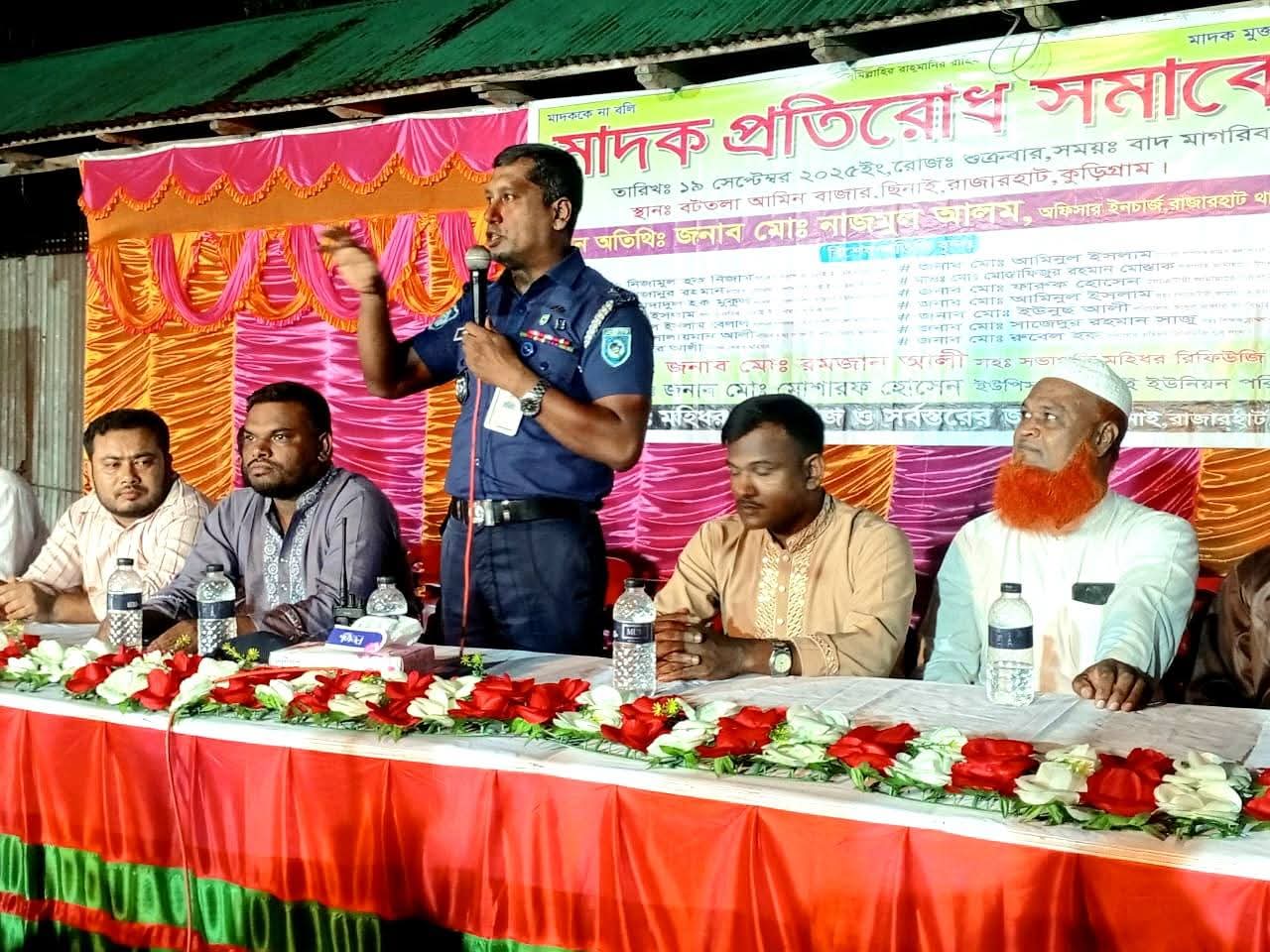 কুড়িগ্রামের রাজারহাট উপজেলার ছিনাই ইউনিয়নের বটতলা আমিন বাজারে “মাদককে না বলি, মাদকমুক্ত সমাজ গড়ি” – এই স্লোগানকে সামনে রেখে মাদক প্রতিরোধ সমাবেশ অনুষ্ঠিত হয়েছে। শুক্রবার (১৯ সেপ্টেম্বর ২০২৫) বাদ মাগরিব এ সমাবেশ অনুষ্ঠিত হয়।