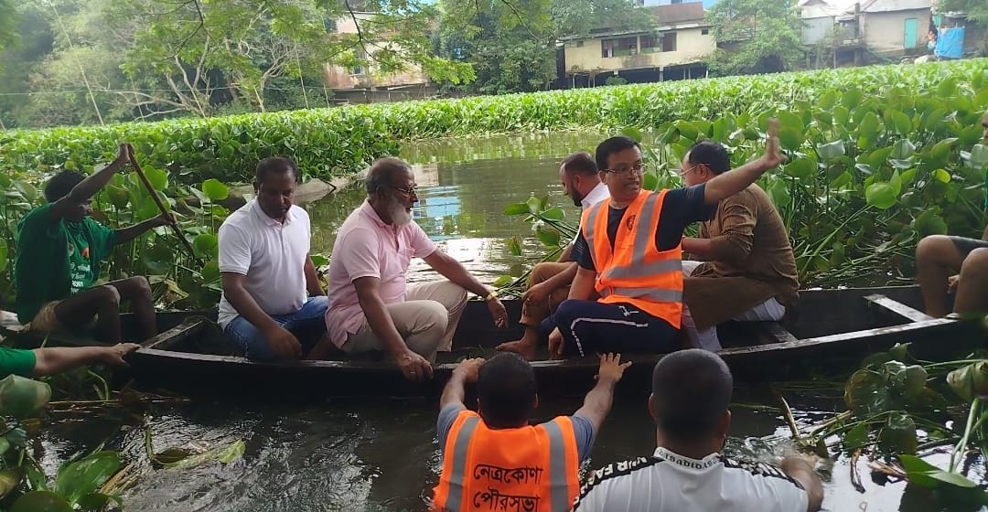 নেত্রকোণায় ধলাই নদীর প্রাণ ফেরাতে জেলা প্রশাসন ও পৌরসভার উদ্যোগে কচুরিপানা পরিষ্কার-পরিচ্ছন্নতা অভিযান শুরু হয়েছে।