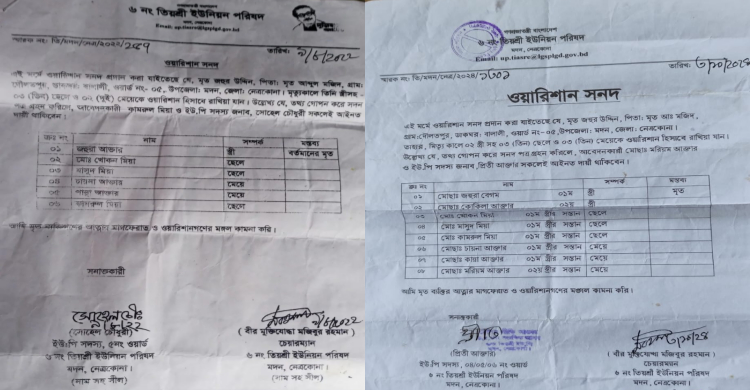 তবে অভিযুক্ত ইউপি সদস্য সোহেল চৌধুরী স্বীকার করেন, “আমার দেওয়া ওয়ারিশান সনদে ভুল ছিল। এটি সংশোধনের জন্য আমরা মিটিং করেছি।”