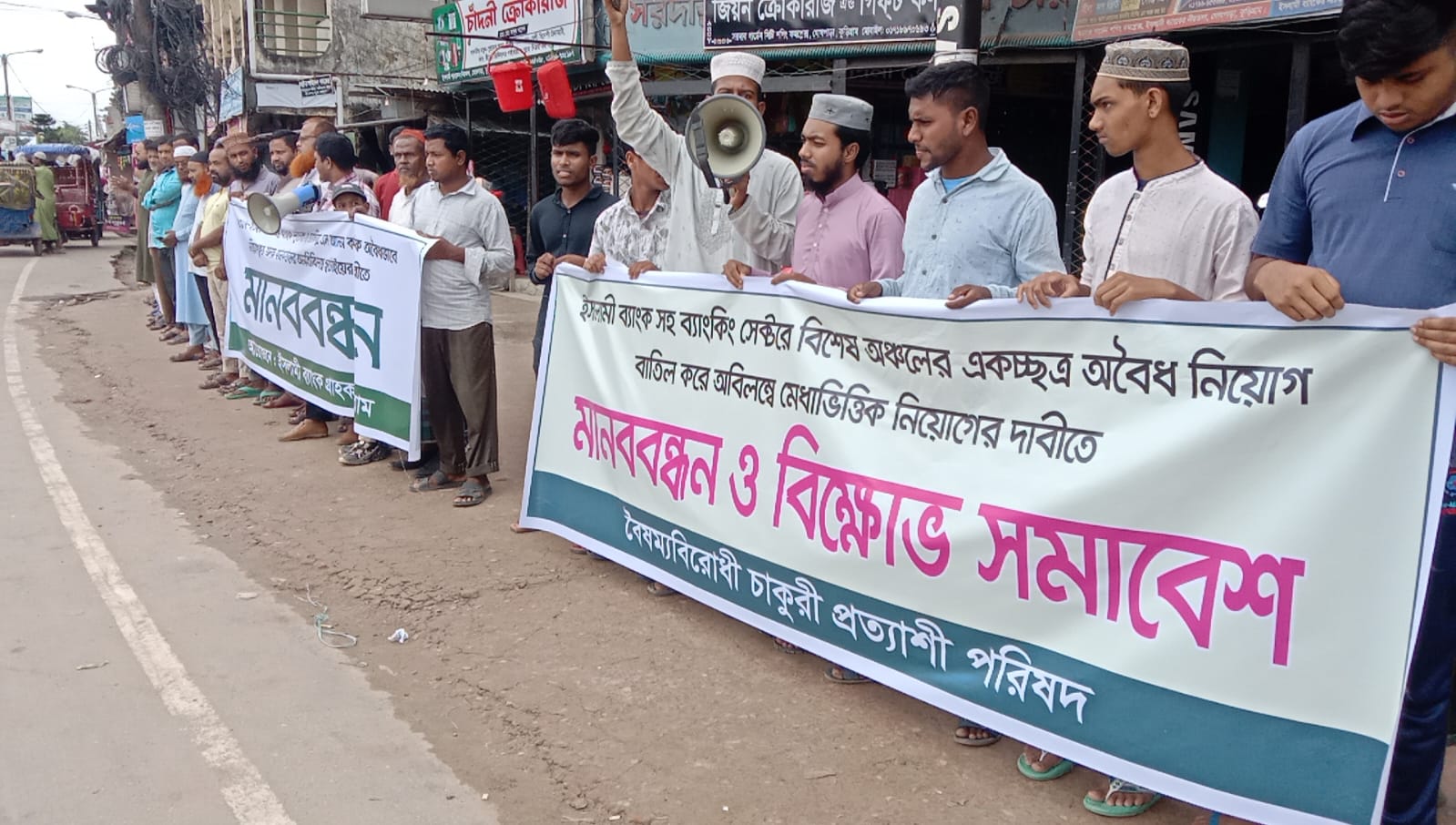 বক্তারা অবিলম্বে এসব অবৈধ নিয়োগ বাতিল করে সারা দেশ থেকে মেধাভিত্তিক নিয়োগ নিশ্চিত করার দাবি জানান।