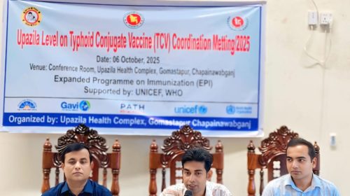 এমরান আলী বাবু, গোমস্তাপুর (চাঁপাইনবাবগঞ্জ) প্রতিনিধিঃ চাঁপাইনবাবগঞ্জের গোমস্তাপুর উপজেলা স্বাস্থ্য কমপ্লেক্সের আয়োজনে টাইফয়েড কনজুগেট ভ্যাকসিন (TCV) সংক্রান্ত উপজেলা পর্যায়ের সমন্বয় সভা অনুষ্ঠিত হয়েছে। সোমবার সকালে উপজেলা স্বাস্থ্য কমপ্লেক্সের সম্মেলন…
